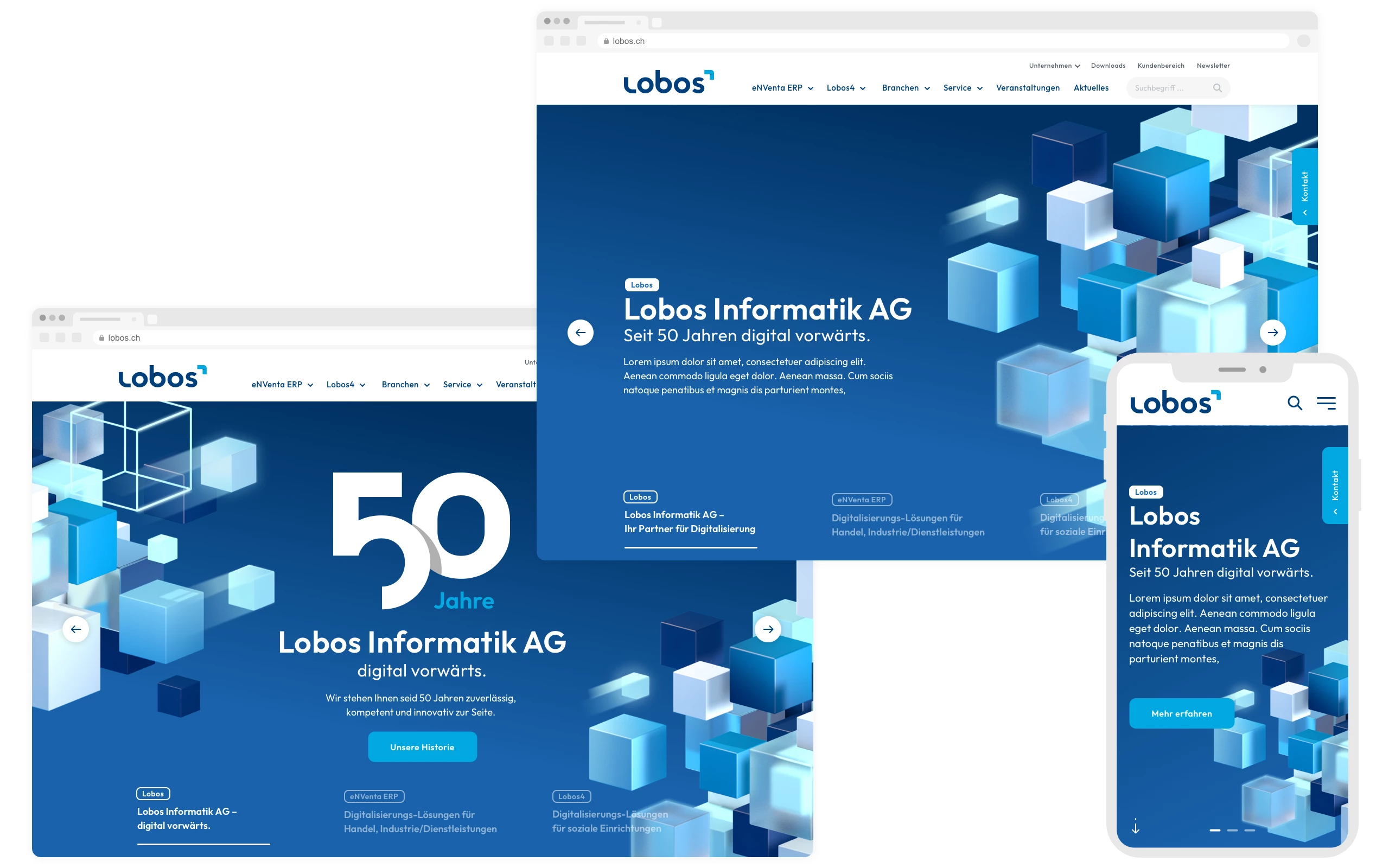 Aufbauend auf die strategische Konzeption entstand in der Federführung von Büro Bornholdt ein umfassendes visuelles Rebranding für einen modernen, einheitlichen Markenauftritt, der sowohl die technologische Kompetenz als auch die langjährige Branchenexpertise von Lobos sichtbar macht.